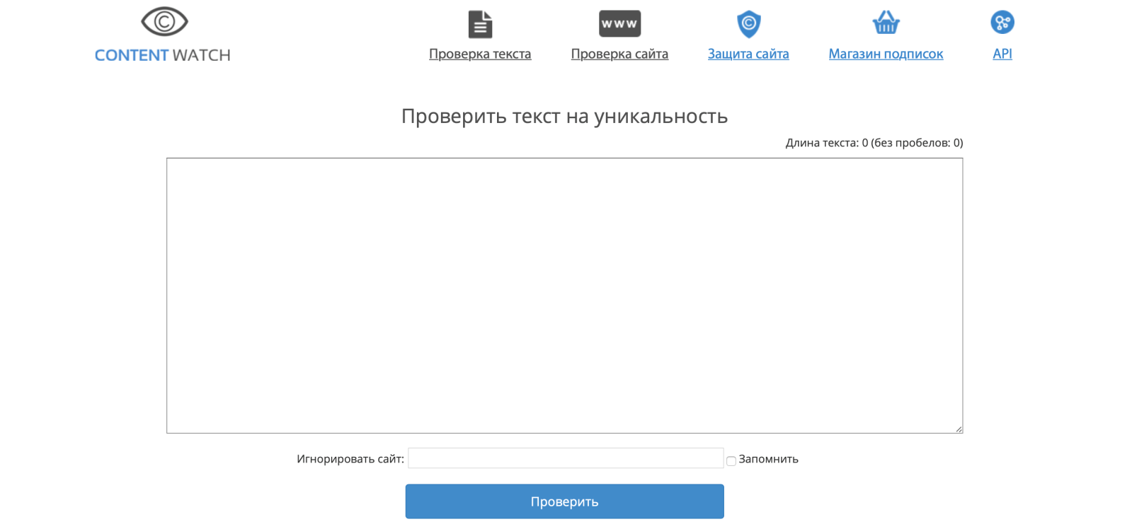 Главное отличие Контент Воч от остальных — возможность регулярно проверять весь сайт в фоновом режиме и получать отчеты, если кто-то скопировал уникальный контент. Этот антиплагиат больше подходит не студентам, а копирайтерам и владельцам коммерческих проектов в интернете — его удобнее использовать для мониторинга сайтов, а не для анализа академических работ. Однако на сайте вы можете найти стандартную функцию проверки. В бесплатной версии есть несколько ограничений:
