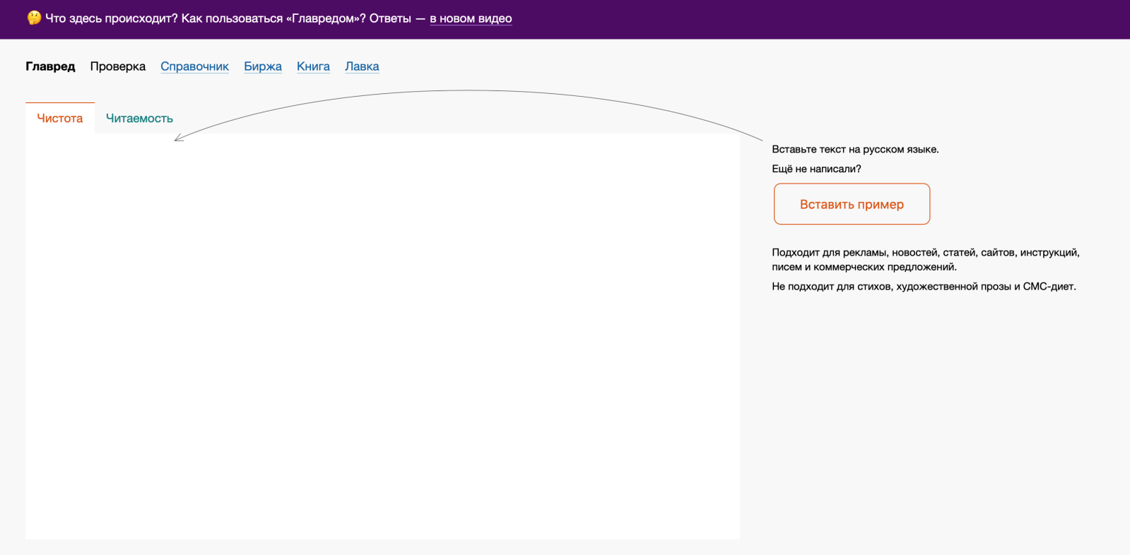 Несмотря на то, что здесь нет стандартной проверки на уникальность, этот сервис нельзя не упомянуть. Работая над дипломом или курсовой, вы можете столкнуться с критикой стиля от преподавателя. Ненаучный стиль, слишком много воды или художественных описаний — все это может негативно сказаться на оценке. Чтобы избежать этого, можно почистить текст, убрав лишние выражения. В этом помогает «Главред»: он подсвечивает все лишнее и дает рекомендации по исправлению.
