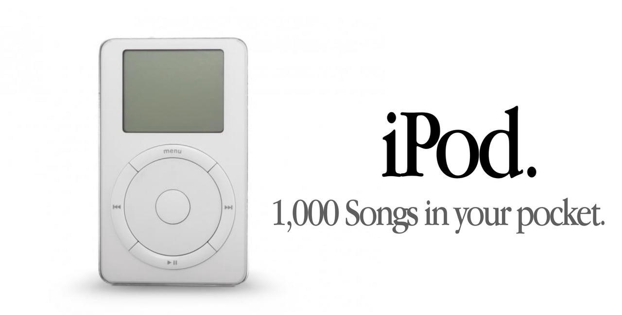 Есть и более масштабные истории. Например, о том, как вся музыка поместилась в карман с помощью iPod. С технологической точки зрения, Apple сделала первое устройство с несколькими гигабайтами памяти, но в рекламе рассказывается целая история всего одной фразой: