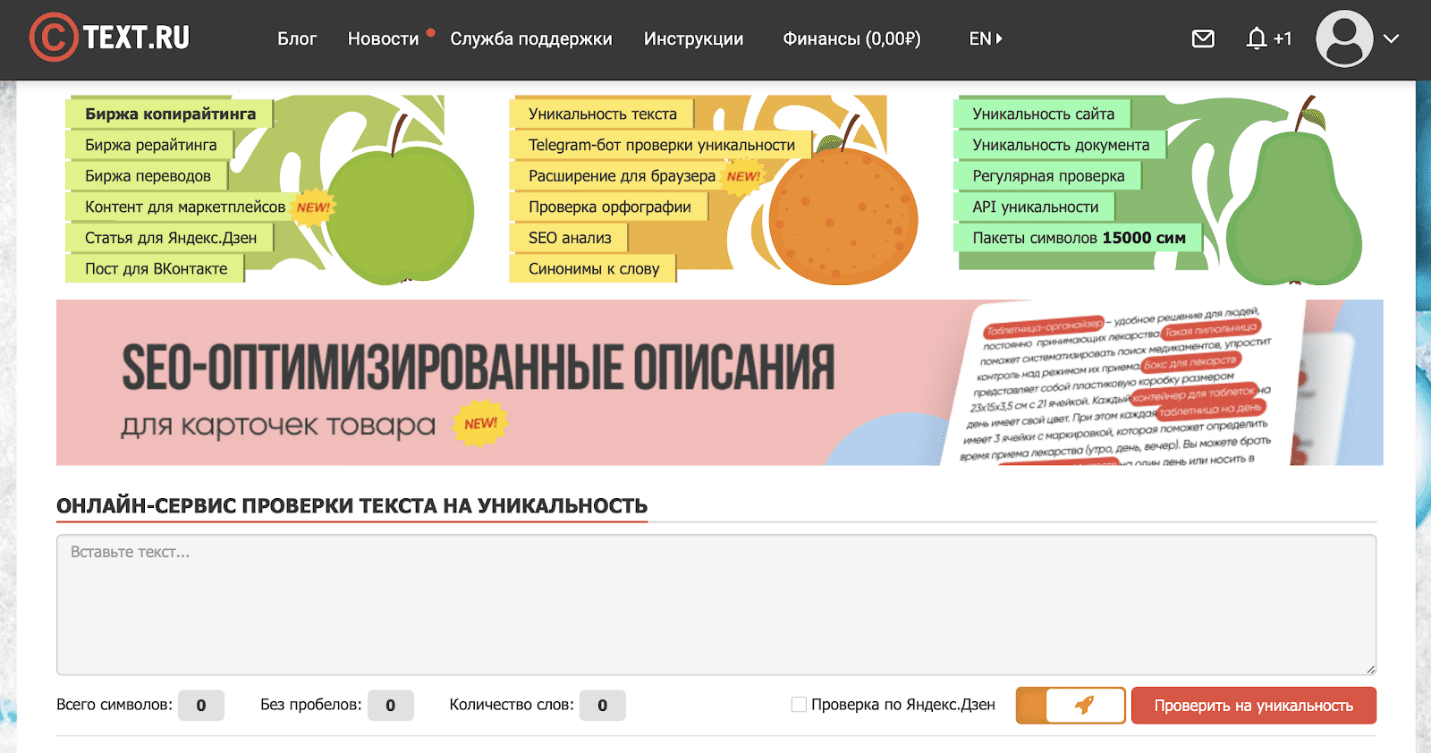 Изначально этот сервис проверки — биржа для создателей контента. Ей пользуются копирайтеры, переводчики и другие специалисты, которые пишут статьи для интернета. У сервиса проверки на антиплагиат есть две версии: